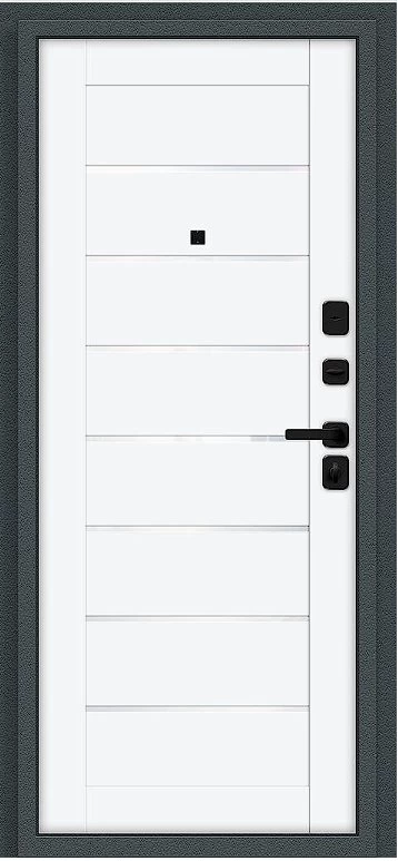 Надежная входная Дверь Браво Техно/SBlack Старк антрацит/White Silk премиум класса по цене 35 693 руб. Большая толщина стали защитит от проникновения в ваш дом, квартиру или коттедж. Используется очень качественная фурнитура: замки, цилиндры, ручки, защелки. Покрытие и отделка двери изготовлено под внимательным контролем производителя. Дверь имеет долгий срок службы и гарантию.
