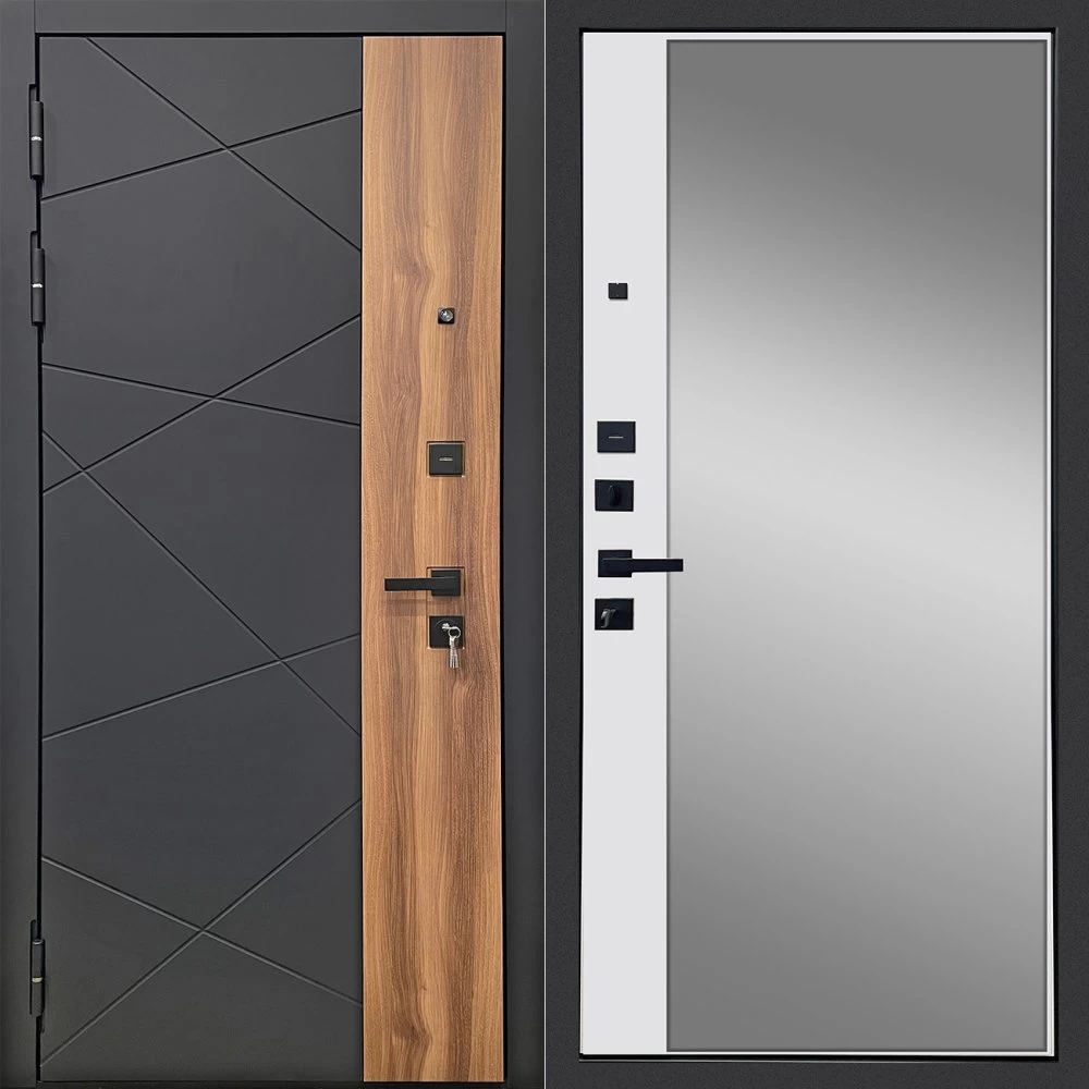 Дизайнерская входная Дверь Ратибор РАКУРС 3К ЗЕРКАЛО класса Люкс с несколькими листами стали, звукоизоляцией и теплоизоляцией. Утепленный короб и полотно защитят от сквозняков и шумов. Модель не только надежная, комфортная, защищенная и высочайшего качества, но и очень красивая! Будет отлично сочетаться с интерьером дома, квартиры или офиса. Сейчас действует выгодное предложение по цене: 55 093 руб.